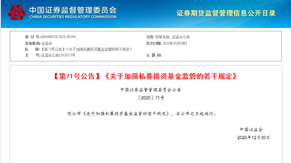 证监会发布《关于加强私募投资基金监管的若干规定》