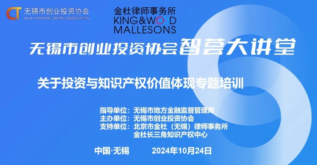 关于举办无锡市创投智荟大讲堂——投资与知识产权价值发现专题培训的通知