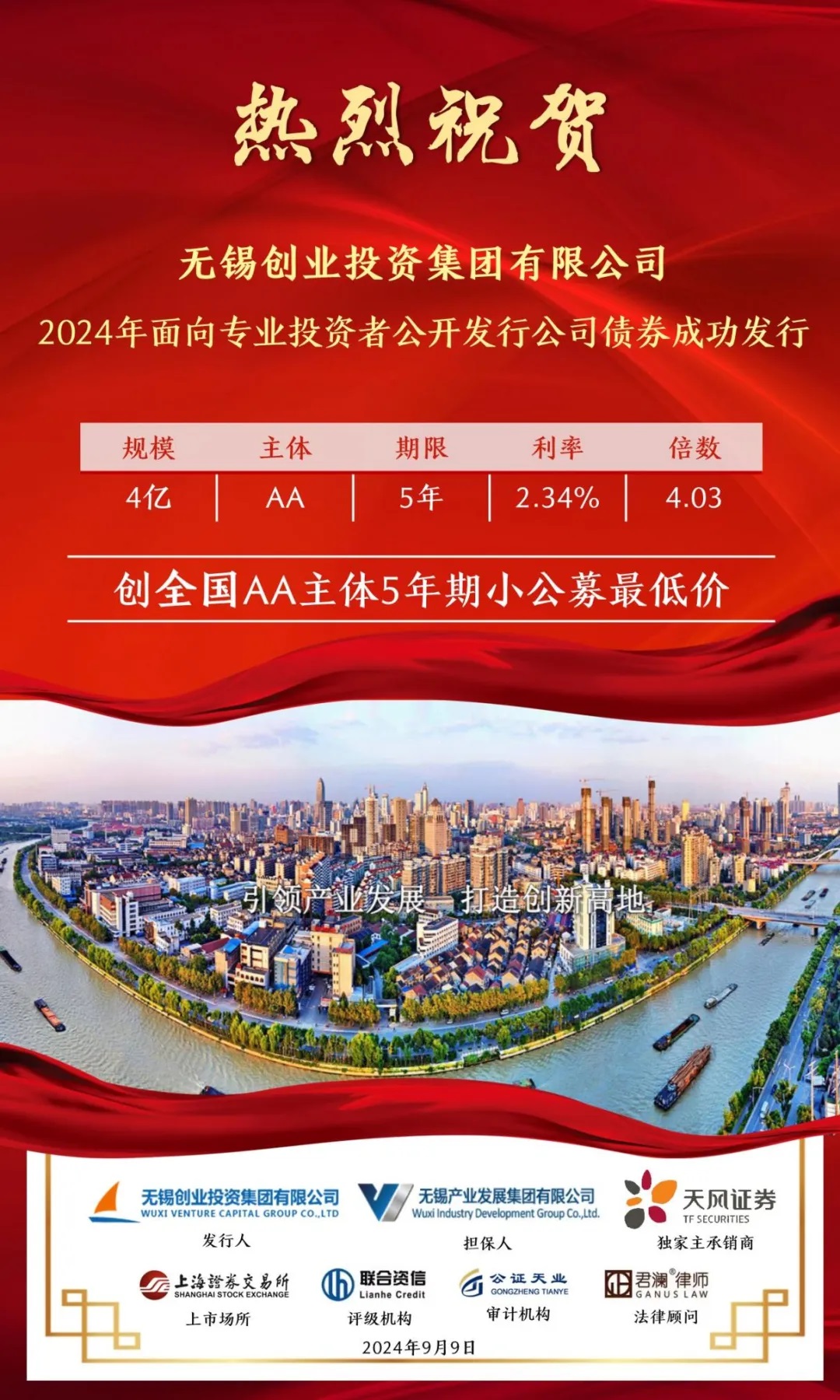 协会理事单位无锡创业集团2024年公司债券成功发行