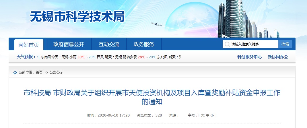 无锡市科技局 市财政局关于组织开展市天使投资机构及项目入库暨奖励补贴资金申报工作的通知