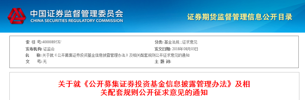 证监会发布《公开募集证券投资基金信息披露管理办法》及相关配套规则