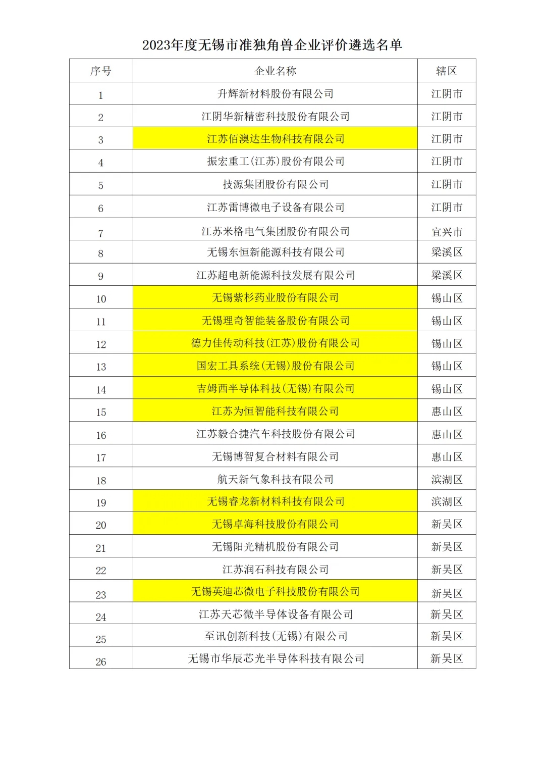 无锡市准独角兽企业遴选公布,协会会长单位锡创投已投企业占据近半名单