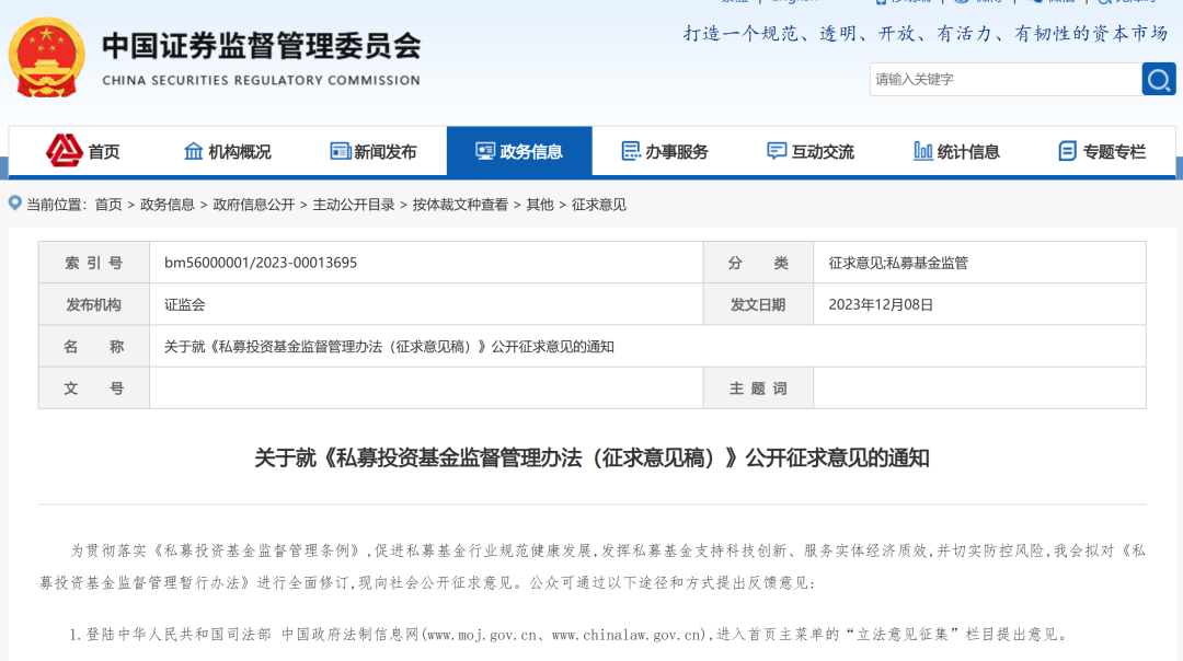 证监会就《私募投资基金监督管理办法(征求意见稿)》公开征求意见