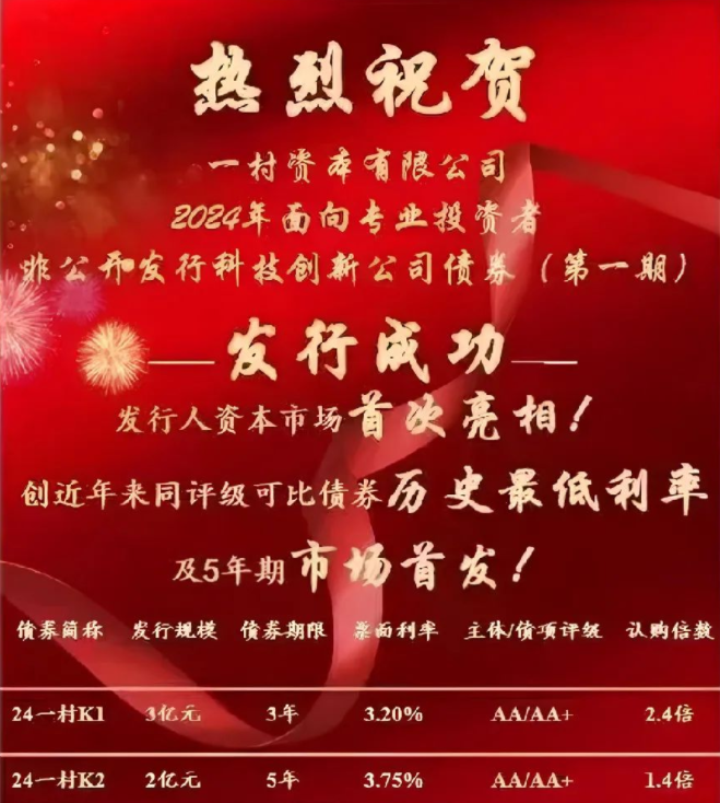 喜报!协会会员单位一村资本7亿元科创债,首期成功发行