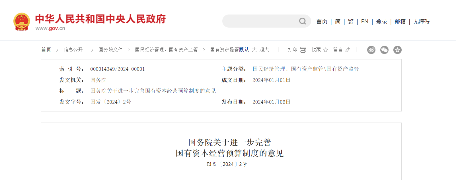 国务院关于进一步完善国有资本经营预算制度的意见